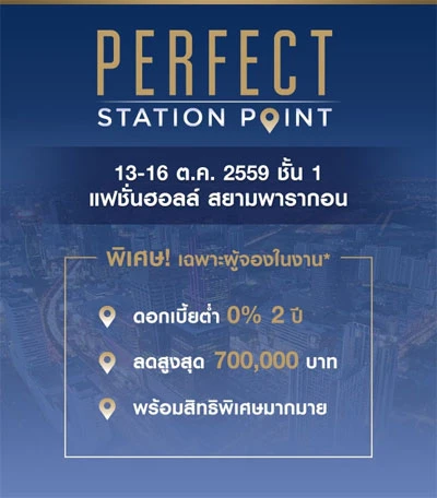 พร้อมให้ปักหมุดได้แล้วกับ 3 คอนโดทำเลใหม่ใกล้รถไฟฟ้า จากพร็อพเพอร์ตี้ เพอร์เฟค เปิดตัวพร้อมกันในงาน PERFECT STATION POINT วันที่ 13 - 16 ต.ค. นี้ ณ แฟชั่นฮอลล์ สยามพารากอน พิเศษรับโปรโมชั่นดอกเบี้ย 0% นาน 2 ปี* ส่วนลดสูงสุดถึง 700,000 บาท