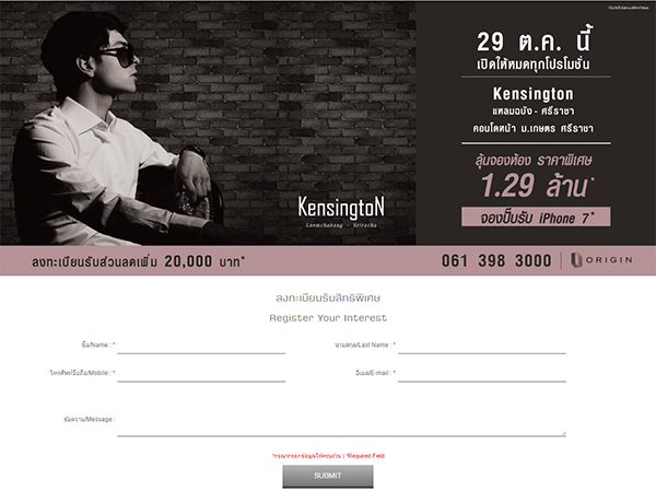 ผู้ที่สนใจ โครงการ เคนซิงตัน แหลมฉบัง - ศรีราชา (Kensington Laemchabang-Sriracha) สามารถลงทะเบียนเพื่อรับส่วนลดและสิทธิพิเศษต่างๆ อาทิ รับส่วนลดเพิ่ม 20,000 บาท ลุ้นจองห้องในราคาพิเศษ 1.29 ล้านบาท และเมื่อจองห้องรับ iPhone 7