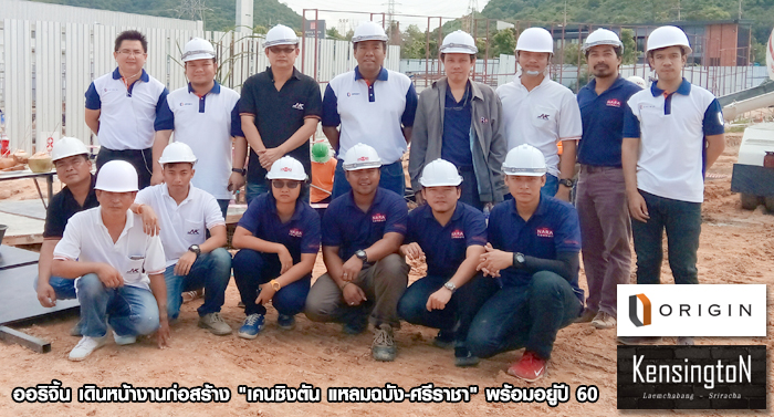 คุณชัยวัฒน์ จักรแต๋ กรรมการบริหาร (ยืน ที่ 5 จากขวา) บริษัท ออริจิ้น พร็อพเพอร์ตี้ จำกัด (มหาชน) ประธานในพิธียกเสาเอก-เสาโท งานก่อสร้าง โครงการ เคนซิงตัน แหลมฉบัง - ศรีราชา (Kensington Laemchabang-Sriracha) พร้อมด้วยผู้บริหารจาก บริษัท นารา พลัส คอนซัลท์ จำกัด ที่ปรึกษาโครงการ เเละ บริษัท เจ แอนด์ เค กรุ๊ป เอ็นจิเนียริ่ง จำกัด ดูแลเรื่องการก่อสร้าง ร่วมในพิธี โดยโครงการ เป็นคอนโดมิเนียม Low Rise สูง 8 ชั้น 4 อาคาร จำนวน 798 ยูนิต มูลค่า 1,150 ล้านบาทออกแบบภายใต้แนวคิด "Modern Loft" ได้แรงบันดาลใจมาจาก Irish Pub ที่เน้นการออกแบบให้มี Double Space ที่เปิดโล่ง ผสมผสานกับการใช้วัสดุ เช่น เหล็ก, อิฐโชว์แนว ภายในโครงการมี Facilities ครบครันรองรับไลฟ์สไตล์คนรุ่นใหม่ ซึ่งในขณะนี้ได้เริ่มดำเนินงานก่อสร้าง และคาดว่าจะแล้วเสร็จประมาณไตรมาส 2/2560