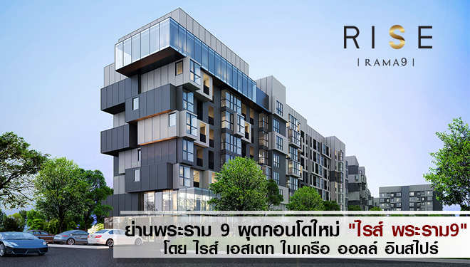 บริษัท ไรส์ เอสเตท จำกัด ในเครือ บริษัท ออลล์ อินสไปร์ ดีเวลลอปเม้นท์ จำกัด (มหาชน) เปิดคอนโดโครงการใหม่ "ไรส์ พระราม 9 (Rise Rama 9)" ตั้งอยู่บนที่ดินกว่า 6 ไร่ บนถนนพระราม 9 เป็นคอนโด Low Rise 8 ชั้น มีทั้งหมด 4 อาคาร รวมห้องพักอาศัยกว่า 600 ยูนิต รูปแบบห้องชุดของโครงการเป็นแบบตกแต่งมาพร้อมอยู่ (Fully-furnished) ออกแบบภายใต้คอนเซปต์ Futuristic ที่ดูล้ำสมัย รูปแบบของห้องเป็นแบบ 1 ห้องนอน ขนาด 25-33 ตร.ม., 2 ห้องนอน ขนาด 61 ตร.ม. และ ห้อง Duplex 70 ตร.ม. ซึ่งห้องนี้เชื่อมต่อกับสระว่ายน้ำ Style Lap Pool เป็นความพิเศษเหนือระดับ นอกจากนี้ สิ่งอำนวยความสะดวกภายในโครงการยังตอบโจทย์ความต้องการของคนรุ่นใหม่อีกหลายอย่าง เช่น ล็อบบี้เลาจน์, ร้านกาแฟ, ห้องสำหรับจัดประชุม และฟังก์ชั่นสมาร์ทโฮม (Home Intelligence) ในราคาเริ่มต้น 1.69 ล้านบาท