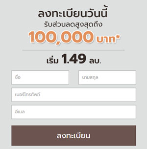 ลงทะเบียนวันนี้!! รับส่วนลดสูงสุด 100,000 บาท