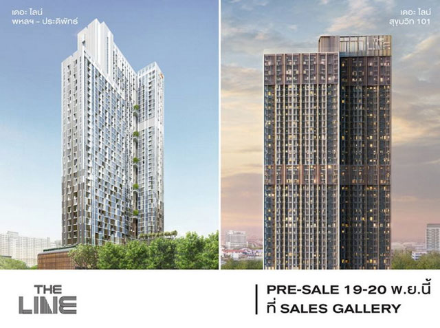 แสนสิริเตรียม Pre-Sale คอนโดมิเนียมภายใต้ความร่วมมือระหว่าง แสนสิริ และ บีทีเอส กรุ๊ป แบรนด์ เดอะ ไลน์ 2 โครงการใหม่ล่าสุด รวมมูลค่า 10,000 ล้านบาท วันที่ 19 - 20 พ.ย.นี้ กับ "เดอะ ไลน์ สุขุมวิท 101" ใกล้ BTS ปุณณวิถี เพียง 250 เมตร Global Launch พร้อมกัน 6 ประเทศเอเชีย ฮ่องกง-สิงคโปร์-ไต้หวัน-จีน-มาเลเซีย-ไทย และ "เดอะ ไลน์ พหลฯ-ประดิพัทธ์" ใกล้รถไฟฟ้า BTS สะพานควาย 550 เมตร Pre-Sale ที่ Sales Gallery ถ.ประดิพัทธ์