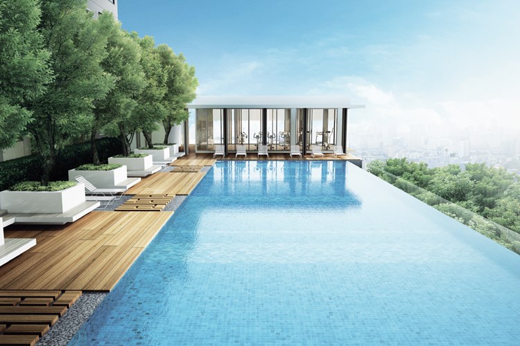 ภาพจำลองบรรยากาศสระว่ายน้ำส่วนกลางของโครงการ แอสปาย งามวงศ์วาน (Aspire Ngamwongwan)