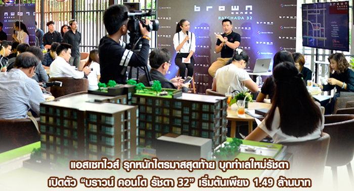แอสเซทไวส์ รุกไตรมาสสุดท้าย บุกทำเลใหม่รัชดา เปิดตัว บราวน์ คอนโด รัชดา 32 เริ่มต้นเพียง 1.49 ลบ.