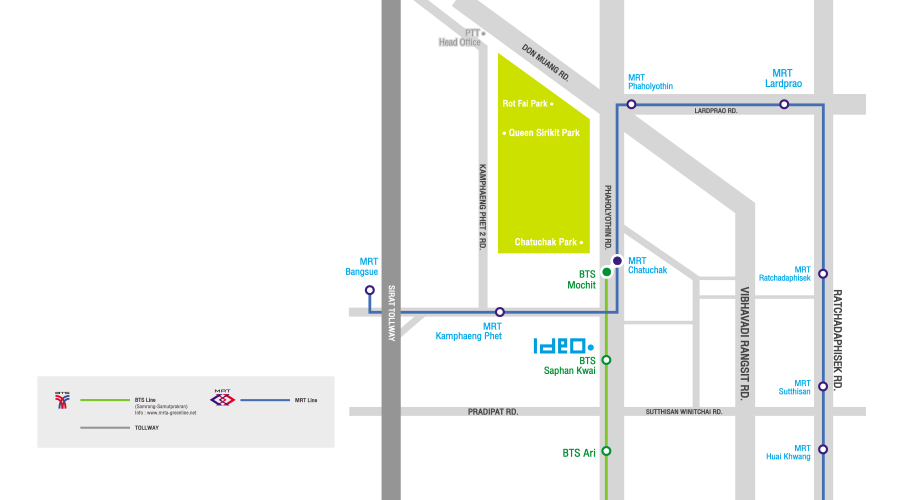 "ไอดีโอ พหลโยธิน-จตุจักร" คอนโดใหม่จาก บริษัท อนันดา ดีเวลลอปเม้นท์ จำกัด (มหาชน) เป็นคอนโดแต่งครบ พร้อมที่จอดรถกว่า 70% ใกล้ BTS สะพานควายเพียง 150 เมตร และใกล้ MRT กำแพงเพชรเพียง 500 เมตร สภาพแวดล้อมรอบๆ โครงการ มีสิ่งอำนวยความสะดวกหลากหลาย ทั้งห้างสรรพสินค้าอย่างเซ็นทรัลลาดพร้าว ยูเนี่ยนมอลล์ ที่สำคัญมีสวนสาธารณะพื้นที่สีเขียวขนาดใหญ่อย่าง สวนจตุจักร, สวนสมเด็จพระนางเจ้าสิริกิติ์ และสวนรถไฟ ในราคาเริ่มต้น 3.59 ล้าน