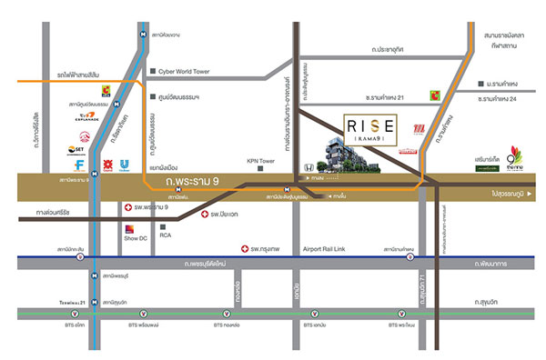 "ไรส์ พระราม 9 (Rise Rama 9)" ตั้งอยู่บนถนนพระราม 9 บนเนื้อที่กว่า 6 ไร่ เป็นอาคารพักอาศัยสูง 8 ชั้น จำนวน 4 อาคาร รวมห้องพักอาศัยกว่า 600 ยูนิต พร้อมตกแต่ง ออกแบบภายใต้คอนเซปต์ Futuristic ที่ดูล้ำสมัย ขนาดห้องพักเริ่มตั้งแต่แบบ 1 ห้องนอน ขนาด 25-33 ตร.ม., 2 ห้องนอน ขนาด 61 ตร.ม. และ ห้อง Duplex 70 ตร.ม. พร้อมสิ่งอำนวยความสะดวกภายในโครงการ อาทิ ล็อบบี้เลาจน์, ร้านกาแฟ, ห้องสำหรับจัดประชุม และฟังก์ชั่นสมาร์ทโฮม (Home Intelligence)