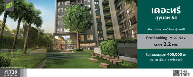 Pre-Booking คอนโดใหม่ "เดอะทรี สุขุมวิท 64" ใกล้บีทีเอส ปุณณวิถี 300 เมตร วันที่ 19-20 พ.ย. นี้
