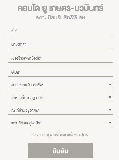 ใหม่! คอนโด "ยู เกษตร-นวมินทร์" โครงการจาก บมจ.แกรนด์ ยูนิตี้ ดิเวลล็อปเม้นท์ หรือ GRAND U มูลค่าโครงการ 820 ล้านบาท ใกล้รถไฟฟ้าสองสายและทางด่วน เพียง 5 นาทีจากสถานีรถไฟฟ้าบางบัว และ 3 นาทีจากสถานีรถไฟฟ้า ลาดปลาเค้า (สถานีในอนาคต) เริ่ม 1.79 ล้านบาท*