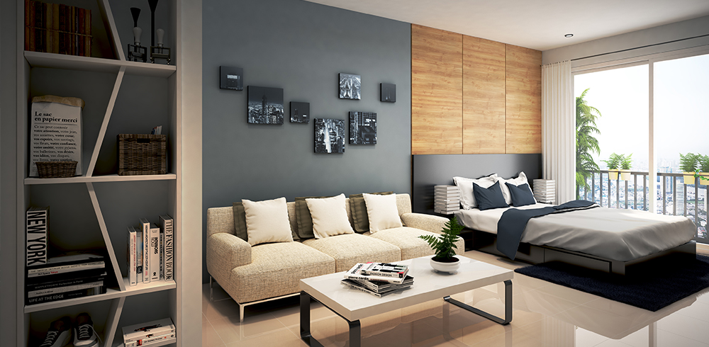 ห้องพักอาศัยของโครงหารเป็นห้องพักแบบสตูดิโอ ขนาดพื้นที่ใช้สอย 25 ตร.ม. ห้องน้ำ เปิด - ปิด ระบบน้ำ ด้วย stop Value สะดวกในการซ่อมแซมเฉพาะจุด ส่วนเตรียมอาหาร ขนาดพอเหมาะและเป็นสัดส่วน พื้นที่นั่งเล่นอเนกประสงค์ ตอบทุกรูปแบบการใช้งานได้อย่างลงตัว ห้องนอนออกแบบให้กว้างสบายพร้อมพื้นที่แต่งตัว ผ่อนคลายกับบรรยากาศสวนส่วนกลาง ด้วยระเบียงส่วนตัวยาวตลอดแนวห้องพัก