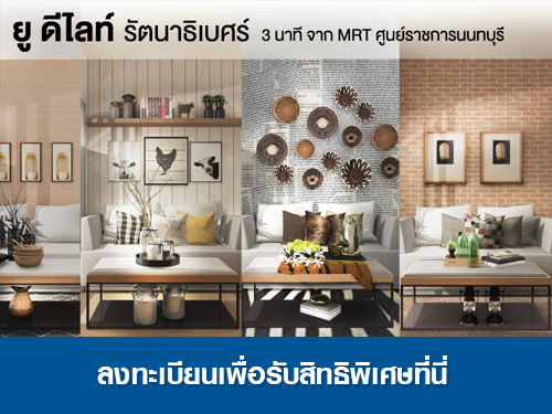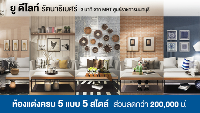 ยู ดีไลท์ รัตนาธิเบศร์ (U Delight Rattanathibet) มาพร้อมกับโปรโมชั่นพิเศษ แต่งห้องครบ 5 แบบ 5 สไตล์ รับส่วนลดสูงสุด 200,000 บาท