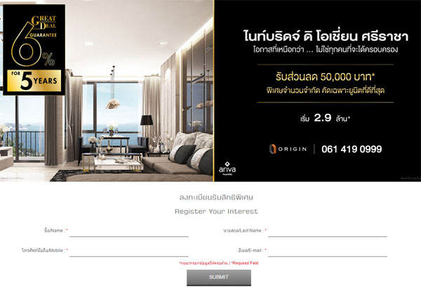ออริจิ้น จับมือ Ariva Hospitality (Thailand) ร่วมบริหารจัดการโครงการ "ไนท์บริดจ์ ดิ โอเชียน ศรีราชา"