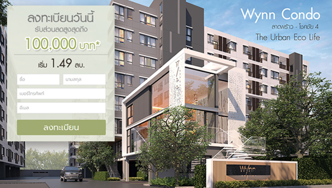 บริษัท ไพร์ซ พร็อพเพอร์ตี้ จำกัด ในเครือ บริษัท แอสเสทไวส์ จำกัด เปิด "วินน์ คอนโด ลาดพร้าว-โชคชัย 4 (Wynn Condo Ladprao-Chockchai 4)" คอนโดใหม่สไตล์ Eco Life ใกล้รถไฟฟ้าสายสีเหลือง ใกล้ Central ลาดพร้าว และ Major รัชโยธิน ใกล้โรงพยาบาลเปาโล ราคาเริ่ม 1.49 ล้าน เปิดให้ลงทะเบียนแล้ววันนี้ พร้อมรับส่วนลดสูงสุด 100,000 บาท*