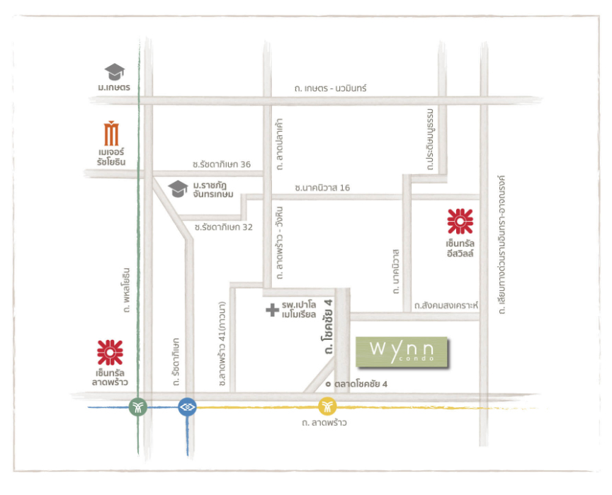 วินน์ คอนโด ลาดพร้าว-โชคชัย 4 (Wynn Condo Ladprao-Chockchai 4) ตั้งอยู่ติดถนนโชคชัย 4 บนเนื้อที่ 2 ไร่ 1 งาน 54 ตร.ว. เป็นคอนโด Low Rise 8 ชั้น 3 อาคาร มาพร้อมกับอาคารส่วนกลางอีก 1 อาคาร 3 ชั้น รวมห้องพักอาศัย 325 ยูนิต โครงการนี้เป็นสไตล์ Eco Life จากแนวคิดเพื่อการใช้ชีวิตที่เป็นมิตรกับสิ่งแวดล้อม สู่การออกแบบทุกรายละเอียด ภายใต้แรงบันดาลใจจากธรรมชาติ ผสานความสงบร่มรื่นของพื้นที่สีเขียวเพื่อตอบรับชีวิตในแบบอีโคไลฟ์ แทรกตัวอยู่ท่ามกลาง ความเจริญของเมืองใหญ่ในทำเลที่แวดล้อมไปด้วยความสะดวกสบายรอบด้าน