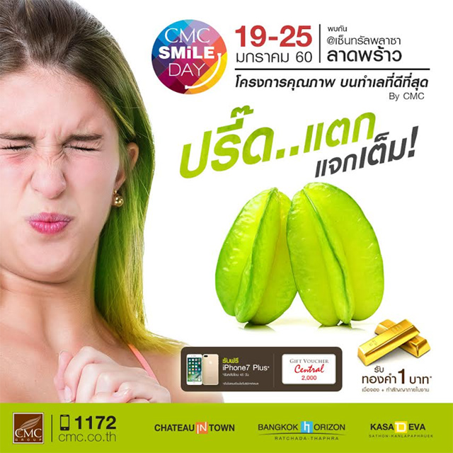 บริษัท เจ้าพระยามหานคร จำกัด (มหาชน) และ บริษัท พระยาพาณิชย์พร็อพเพอร์ตี้ จำกัด ในเครือ CMC Group ขอต้อนรับปี 2560 ด้วยแคมเปญ CMC Smile Day ปรี๊ดแตก...แจกเต็ม! แคมเปญส่งมอบรอยยิ้มต้อนรับปีใหม่ เพื่อเป็นของขวัญชิ้นพิเศษให้กับลูกค้าที่ไว้วางใจ CMC Group ด้วยดีเสมอมา พร้อมกับโปรโมชั่นสุดพิเศษ ตั้งแต่วันที่ 19-25 มกราคม 2560 ณ ศูนย์การค้า เซ็นทรัล พลาซา ลาดพร้าว ชั้น 1 โซน C