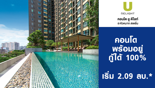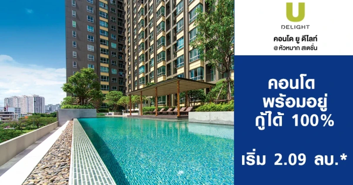 คอนโด ยู ดีไลท์ @ หัวหมาก สเตชั่น จาก แกรนด์ ยูนิตี้ คอนโดพร้อมอยู่ กู้ได้ 100% เริ่ม 2.09 ลบ.*