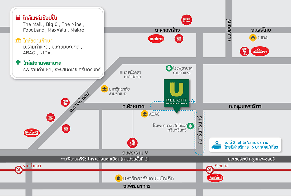 "Selected for you" ยู ดีไลท์ @หัวหมาก สเตชั่น จาก แกรนด์ ยูนิตี้ ดิเวลล็อปเมนท์ คอนโดพร้อมอยู่ ให้กู้ได้ 100% อีกทางเลือกสำหรับคนทำงาน ที่ชอบใช้ชีวิตสงบ หลบความเร่งรีบ การจราจรคล่องตัวและเดินทางสะดวก ด้วย Shuttle Van ที่คอยรอรับส่งจากหน้าประตูคอนโด ไปถึง Airport Link หัวหมาก ตั้งแต่เช้าถึงเย็น มั่นใจในระบบรักษาความปลอดภัย รปภ. กล้องวงจรปิดกว่า 100 ตัว ตลอด 24 ชั่วโมง มีร้านสะดวกซื้อ 7-11 บริการ และการแจ้งซ่อมออนไลน์ ได้ตลอด 24 ชม. ในราคาเริ่มต้น 2.09 ล้านบาท* (อ่านรีวิวโครงการยู ดีไลท์ @หัวหมากสเตชั่น ฉบับเต็มได้ที่นี่)