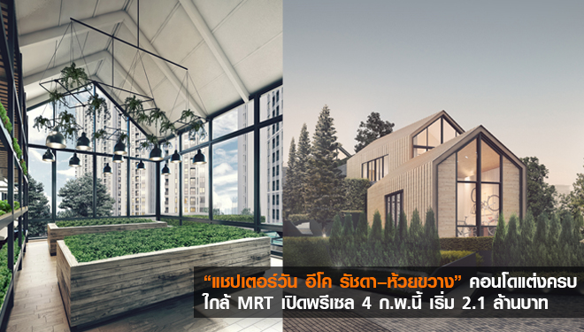 แชปเตอร์วัน อีโค รัชดา-ห้วยขวาง คอนโดแต่งครบ ใกล้ MRT ห้วยขวาง เปิดพรีเซล 4 ก.พ.นี้ เริ่ม 2.1 ล้าน