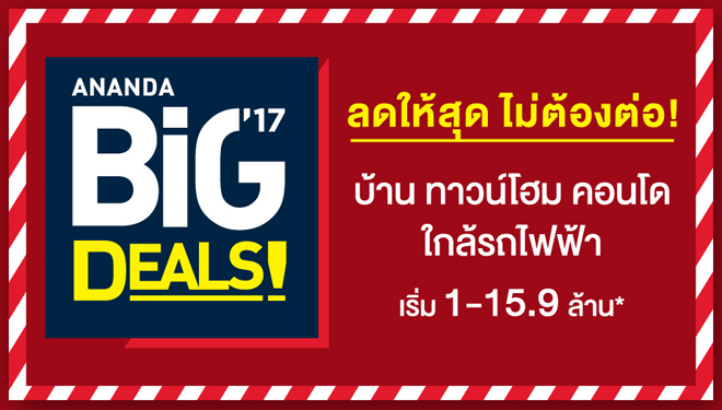 โปรฯ ใหญ่ "Ananda Big Deals! " 18-19 ก.พ. นี้ ยกขบวนคอนโดใกล้รถไฟฟ้ามาแบบลดให้สุดไม่ต้องต่อ