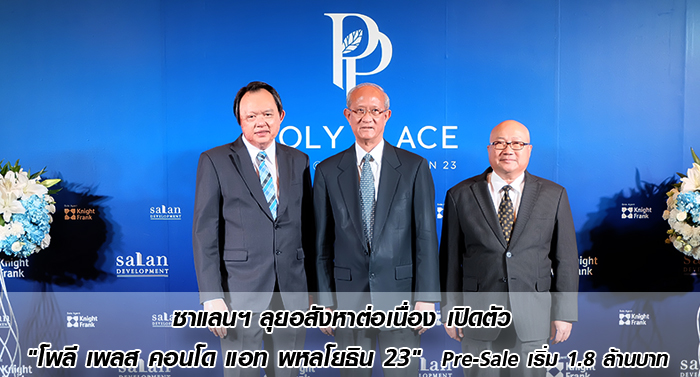 คุณชัยณรงค์ มนเทียรวิเชียรฉาย ประธานกรรมการ บริษัท ซาแลน ดีเวลลอปเมนท์ จำกัด เผยว่า ปัจจุบันราคาที่ดินบริเวณถนนพหลโยธิน นับตั้งแต่ห้าแยกลาดพร้าวซึ่งเป็นศูนย์กลางด้านคมนาคมของกรุงเทพฯ ฝั่งเหนือ ทะยานสูงขึ้น และจากการก่อสร้างของรถไฟฟ้าสายสีเขียวที่มีความคืบหน้ามากขึ้นเรื่อยๆ ทำให้ย่านดังกล่าว โดยเฉพาะหัวถนนไล่ไปจนถึงเมเจอร์รัชโยธิน มีความตื่นตัวและเติบโตค่อนข้างสูง เห็นได้ชัดจากเริ่มมีการปรับเปลี่ยนพื้นที่จากที่อยู่อาศัยเป็นพื้นที่เชิงพาณิชย์มากขึ้น ในส่วนของบริษัทฯ ซึ่งตั้งอยู่ในพื้นที่ และมีที่ดินสะสมได้รับอานิสงส์จากการเติบโตและขยายตัว ทำให้ทรัพย์สินของบริษัทฯ นับวันยิ่งเป็นโลเคชั่นที่ดี ล่าสุดจึงได้ตัดสินใจขึ้นโครงการ โพลี เพลส คอนโด แอท พหลโยธิน 23 (Poly Place Condo @ Phahon Yothin 23) คอนเซปต์ในการออกแบบโครงการ คือต้องการให้ โพลี เพลส คอนโด เป็นมากกว่าการอยู่อาศัย ให้ความรู้สึกเหมือนทุกวันคือการพักผ่อน โดยมุ่งเน้นและให้ความสำคัญกับพื้นที่ส่วนกลางที่มีสวนสีเขียวกว่า 1 ไร่ ที่ออกแบบสไตล์ Urban Tropical Garden และมี Club House พร้อมสิ่งอำนวยความสะดวกที่ตอบโจทย์ความต้องการของคนรุ่นใหม่ โดยกลุ่มเป้าหมายจะเป็นกลุ่มคนวัยทำงาน ในย่านรัชโยธิน พหลโยธิน วิภาวดี ลาดพร้าว ที่ต้องการมีที่พักอาศัยเป็นของตนเอง เป็นบ้านหลังแรก หรือคนที่มองหาคอนโดเพื่อการลงทุน ตามคอนเซปต์โครงการ The Urban Harmony ที่ให้คุณได้สัมผัสความกลมกลืนของชีวิตเมืองท่ามกลางธรรมชาติ