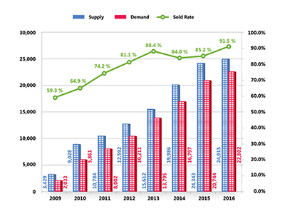 อุปทานและอุปทานใหม่ ตลาดคอนโดมิเนียมบริเวณ ลาดพร้าว จตุจักร เกษตร พหลโยธิน วิภาวดี ปี 2009-2016