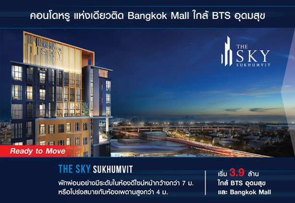 เดอะ สกาย สุขุมวิท (The Sky Sukhumvit) คอนโดหรูแห่งเดี่ยวที่ติด Bangkok Mall ดีไซน์ห้องแบบใหม่ "MOFF Design" บนแนวคิด Extra Space ให้มีพื้นที่พิเศษสามารถปรับเปลี่ยนได้ตามความต้องการ ไม่ว่าจะทำเป็นห้องนอน ห้องทำงาน อีกทั้งเดินทางสะดวกใกล้ทางด่วนบางนา และ BTS สถานีอุดมสุข มีทั้งหมด 5 อาคาร แต่มีความเป็นส่วนตัวเพียง 898 ยูนิต ราคาเริ่มต้น 3.9 ล้านบาท