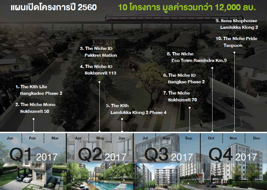 สำหรับรูปแบบการพัฒนาอสังหาริมทรัพย์ ในปีนี้จะเห็นการเปิดโครงการใหม่ที่มีมูลค่าสูงขึ้น รวมทั้งโครงการจะมีขนาดที่ใหญ่ขึ้น เน้นกลุ่มระดับกลาง-บน เพื่อขยายเซกเมนต์ใหม่ๆ ขณะที่โครงการที่เป็นในรูปแบบการร่วมทุนกับบริษัท ฮันคิว เรียลตี้ จำกัด (ประเทศญี่ปุ่น) ในฐานะกลุ่มบริษัท Hankyu Hanshin Holding Group ผู้ประกอบการอสังหาริมทรัพย์ รายใหญ่ในญี่ปุ่น เพื่อร่วมกันพัฒนาโครงการอสังหาริมทรัพย์ เบื้องต้นคาดว่าจะเห็นภายในปลายไตรมาส 3-ไตรมาส 4 ของปี 2560 นี้