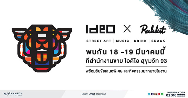 "IDEO X Rukkit" พบกัน 18-19 มี.ค.นี้ ที่ไอดีโอ สุขุมวิท 93 พร้อมรับข้อเสนอสุดพิเศษภายในงาน