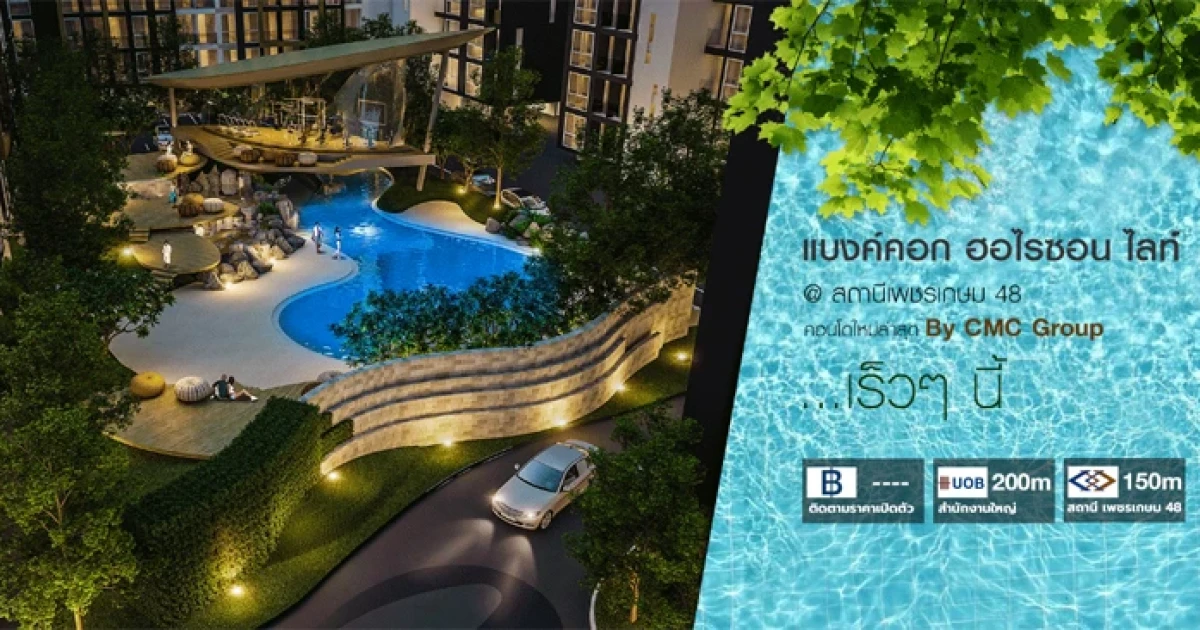 เตรียมพบกับ "แบงค์คอก ฮอไรซอน ไลท์ @ สถานีเพชรเกษม 48" (Bangkok Horizon Lite@Phetkasem 48) โครงการใหม่ล่าสุดจาก บริษัท เจ้าพระยามหานคร จำกัด (มหาชน) หรือ CMC Group เสน่ห์แห่งความอบอุ่น คอนโดเพื่อสุนทรียภาพของการใช้ชีวิต เพียง 150 เมตร จาก MRT สถานีเพชรเกษม 48 และ 200 เมตร จาก UOB สำนักงานใหญ่ โครงการออกแบบภายใต้ Crystal Lagoon Concept ราคาเริ่มต้นล้านกว่าๆ