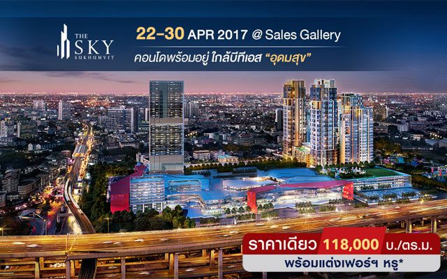 "The Sky สุขุมวิท" ติด Bangkok Mall ราคาเดียว พร้อมตกแต่งเฟอร์ฯ หรู เริ่ม 3.69 ล้าน 22-30 เม.ย. นี้