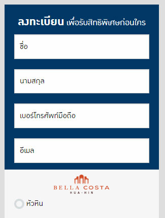 พร้อมสัมผัสบรรยากาศจริงโครงการ Bella Costa Hua Hin คอนโดตากอากาศสไตล์รีสอร์ทริมทะเลหัวหินบนชายหาดส่วนตัว เป็นอาคารพักอาศัยความสูง 7 ชั้น และ 4 ชั้น จำนวน 6 อาคาร ลักษณะห้องชุดมีให้เลือกหลากหลายตั้งแต่แบบ 1 ห้องนอน 45-56 ตร.ม. แบบ 2 ห้องนอน 60-67 ตร.ม. แบบ 3 ห้องนอน 78-96 ตร.ม. และแบบ MOFF DESIGN 62.5-81.5 ตร.ม.