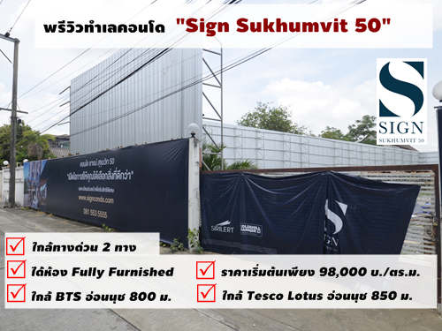 บริษัท ศิริเลิศ ดีเวลลอปเม้นท์ จำกัด เปิดคอนโด Low Rise แห่งใหม่ ซายน์ สุขุมวิท 50 (Sign Sukhumvit 50) คอนโดใกล้ BTS อ่อนนุช ใกล้จุดขึ้น-ลงทางด่วน 2 เส้นทาง ใกล้แหล่งไลฟ์สไตล์ ร้านอาหาร และแหล่งช้อปปิ้งชื่อดัง ย่านเอกมัย และ ทองหล่อ ทางโครงการจะเริ่มก่อสร้างประมาณเดือนพฤศจิกายน 2560 และคาดว่าแล้วเสร็จในเดือนสิงหาคม 2562 เปิดให้ลงทะเบียนได้แล้ววันนี้