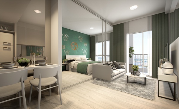 ภาพจำลองบรรยากาศห้องตัวอย่างแบบ Studio