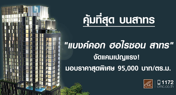 CMC Group จัดแคมเปญแรงให้คุณเป็นเจ้าของคอนโดหรูย่านสาทรได้ง่ายๆ ใกล้รถไฟฟ้าช่องนนทรี "แบงค์คอก ฮอไรซอน สาทร (Bangkok Horizon Sathorn)" หนึ่งในโครงการคอนโดมิเนียมระดับพรีเมียมของ CMC Group ในราคาสุดพิเศษ 95,000 บาท/ตร.ม.