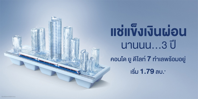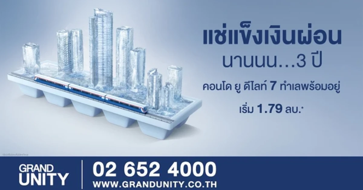 แกรนด์ ยูนิตี้ จับมือ ธ.กสิกรไทย จัดแคมเปญ แช่แข็งเงินผ่อน นานนน... 3 ปี กับคอนโด ยู ดีไลท์ 7 ทำเล