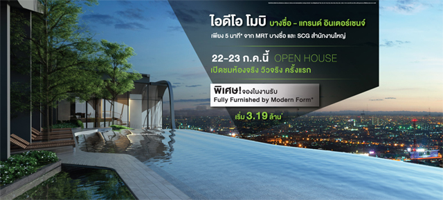 ฤกษ์ดี!!! จังหวะได้สำหรับตลาดอสังหาฯ ในตอนนี้ ต้อนรับกำลังซื้อที่เริ่มกลับมาสดใสอีกครั้ง คราวนี้ ขอเอาใจคนย่านบางซื่อ กับค่ายอนันดา ดีเวลลอปเม้นท์ โดยผู้บริหารหนุ่มไฟแรง คุณชานนท์ เรืองกฤตยา ประธานเจ้าหน้าที่บริหาร และกรรมการผู้จัดการใหญ่ เตรียมจัดงาน Open House โครงการคอนโด ไอดีโอ โมบิ บางซื่อ-แกรนด์ อินเตอร์เชนจ์ (Ideo Mobi Bangsue-Grand Interchange) พร้อมเปิดให้ชมห้องตัวอย่างจริง วิวจริง ครั้งแรก ก่อนใคร!! โดยโครงการมีความโดดเด่นตั้งอยู่บนทำเลศักยภาพติดถนนใหญ่ เดินทางสะดวกด้วยรถไฟฟ้า 3 สาย เพียง 300 ม.* จาก MRT สถานี เตาปูน และ เพียง 5 นาที* จาก MRT บางซื่อ และ SCG สำนักงานใหญ่