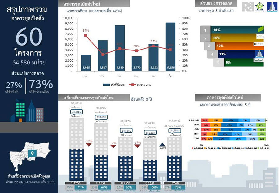 สรุปสถานการณ์อาคารชุดเปิดตัว-จดทะเบียน ครึ่งปี 2560 จากสำนักวิจัย LPN