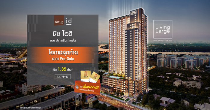 บริษัท เสนาดีเวลลอปเม้นท์ จำกัด (มหาชน) เปิดคอนโด High Rise แห่งใหม่ นิช ไอดี ปากเกร็ด สเตชั่น (Niche id @ Pakkret Station) มาพร้อมกับ Concept "เต็มพิกัดกับชีวิต ฟิตกับตัวตนของคุณ" ในราคาเริ่มต้น 1.35 ล้านบาท* พิเศษลงทะเบียนพร้อมเข้าชมโครงการ รับไปเลยตั๋วหนังฟรี