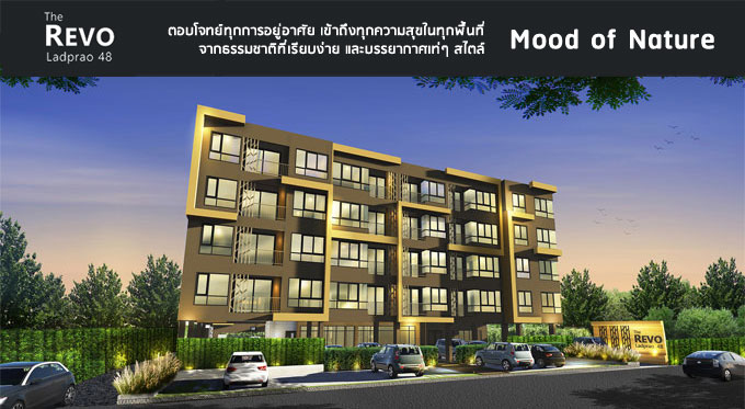 บริษัท รีโว เอสเตท จำกัด เปิดตัวคอนโดมิเนียม Low-rise โครงการใหม่ เดอะ รีโว ลาดพร้าว 48 (The Revo Ladprao 48) ในทำเลย่านลาดพร้าว บริเวณซอยลาดพร้าว 48 ตอบโจทย์ทุกการอยู่อาศัย เข้าถึงทุกความสุขในทุกพื้นที่จากธรรมชาติที่ไม่ธรรมดา ด้วยแนวคิด Mood of Nature ทุกตารางนิ้วบนพื้นที่ของ The Revo จึงเต็มไปด้วยพื้นที่ความสุขที่ดูเรียบง่าย ด้วยบรรยากาศธรรมชาติเท่ๆ แต่มีสไตล์ ฟังก์ชันการใช้งานที่เพียบพร้อมสำหรับทุกความต้องการ ในสเปซที่ตอบโจทย์ครบทุกไลฟ์สไตล์