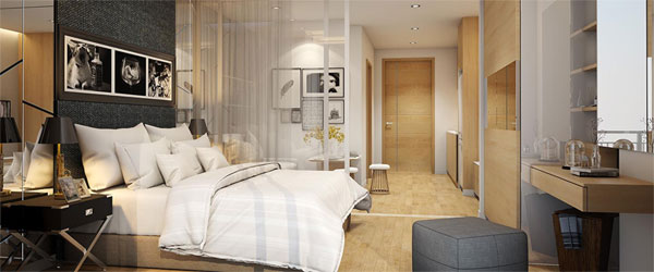 ราคาเริ่มต้น 2.25 ล้าน (Pre-sale) สำหรับห้องเล็กสุดแบบ 1 ห้องนอน ขนาด 30.44 ตร.ม.