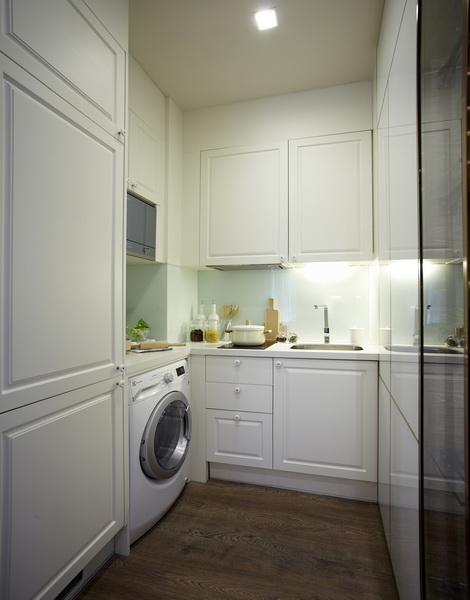 ภาพบรรยากาศห้องตัวอย่าง แบบ 3 ห้องนอน บริเวณพื้นที่ครัว ซึ่งเป็นครัวแบบเปิด
