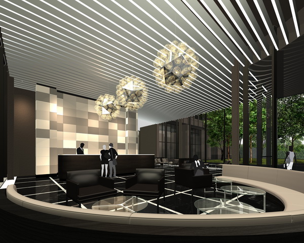 ภาพจำลองบรรยากาศ Reflective Lobby ในยามค่ำคืน