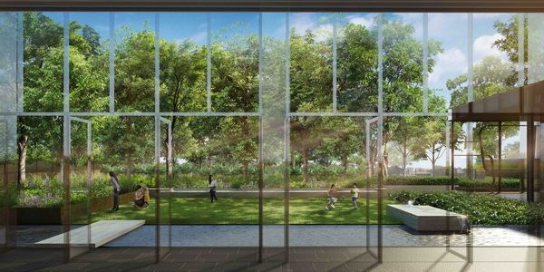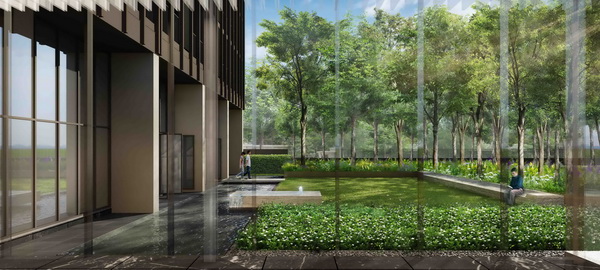 ภาพจำลองบรรยกาศ Semi-Outdoor Lobby ที่เชื่อมต่อกับพื้นที่สวนส่วนกลาง