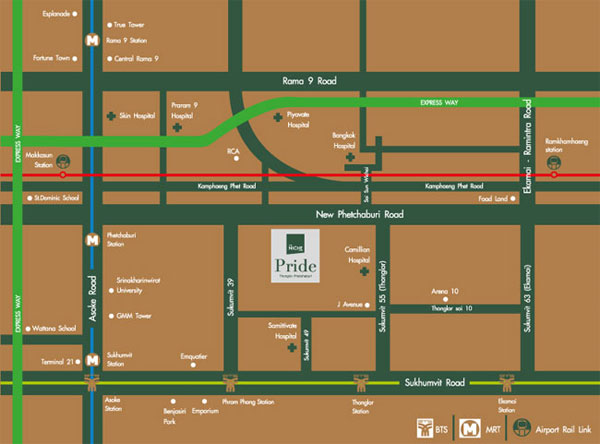 โครงการตั้งอยู่ใจกลางเมือง ติดถนนเพชรบุรีตัดใหม่ แขวงบางกะปิ เขตห้วยขวาง กรุงเทพฯ (เยื้องกับ รพ. กรุงเทพ) ห่างจากปากซอยทองหล่อประมาณ 280 เมตร ซึ่งเป็นแหล่งรวมร้านอาหารและของอร่อย การคมนาคมก็สะดวกสบายเพราะอยู่ในย่านธุรกิจ ไม่ไกลจากรถไฟฟ้า และทางด่วน นอกจากนี้ยังแวดล้อมไปด้วยสิ่งอำนวยความสะดวกครบครันโดยรอบโครงการ ห้างสรรพสินค้าชั้นนำ โรงพยาบาล และโรงเรียน อาทิ