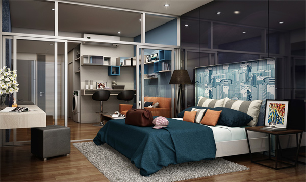 ภาพจำลองบรรยากาศห้องพักอาศัยภายในห้องนอน