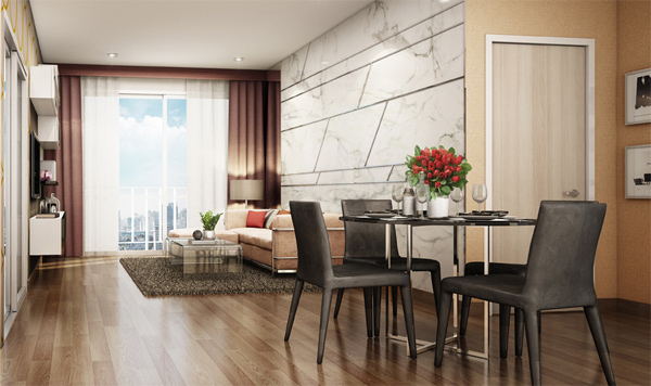 ภาพจำลองบรรยากาศห้องพักอาศัยภายในห้องนั่งเล่น