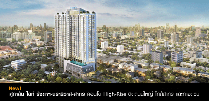 บริษัท ศุภาลัย จำกัด (มหาชน) ยังคงเปิดบุกตลาดคอนโดฯ อย่างต่อเนื่อง โดยล่าสุดได้เปิดตัวโครงการคอนโดมิเนียม High-Rise ภายใต้ชื่อโครงการ ศุภาลัย ไลท์ รัชดาฯ-นราธิวาส-สาทร (Supalai Lite Ratchada - Naradhiwas - Sathon) ซึ่งเป็นคอนโดมิเนียมทำเลคุณภาพติดถนนใหญ่ ใกล้สาทร และทางด่วน สะดวกสบายด้วยสิ่งอำนวยความสะดวกที่ครบครันทันสมัยภายในโครงการ ใกล้แหล่งช้อปปิ้ง อย่างเซ็นทรัล พระราม 3 เพียง 1 กม.