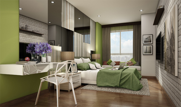 ภาพจำลองบรรยากาศห้องพักอาศัยภายในห้องนอน