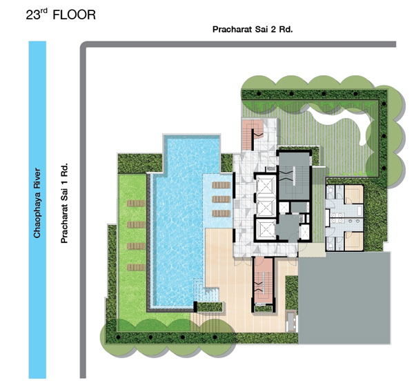 ภาพจำลองบรรยากาศสระว่ายน้ำระบบเกลือบนชั้น 23