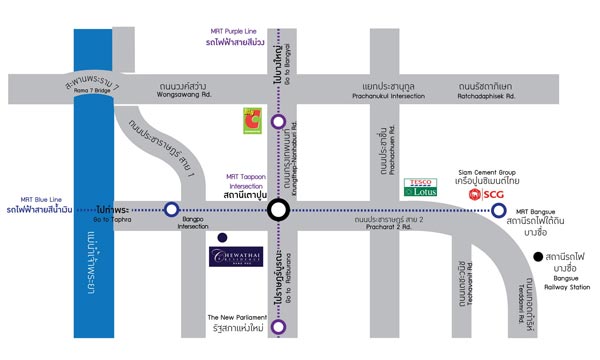 โครงการตั้งอยู่บนถนน ประชาราษฏร์ สาย 2 แขวงบางซื่อ เขตบางซื่อ กรุงเทพฯ การเดินทางสะดวกสบาย ด้วยรถไฟฟ้าสายสีน้ำเงิน ซึ่งตัวโครงการห่างจาก MRT บางโพเพียง 80 เมตร ใกล้ MRT เตาปูนอินเตอร์เชนจ์เพียง 1 สถานี ใกล้ MRT บางซื่อเพียง 2 สถานี การเดินทางด้วยรถยนต์สามารถเข้าออกได้หลายเส้นทาง ทั้งถนนประชาราษฎร์ สาย1 ถนนวงศ์สว่าง หรือถนนกรุงเทพ-นนทบุรี โดยรอบโครงการแวดล้อมด้วยสิ่งอำนวยความสะดวก เพียง 5 สถานีถึงเซ็นทรัลลาดพร้าว, 5 นาที ถึงอาคารรัฐสภาแห่งใหม่ และสะพานเกียกกาย, 15 นาที ถึงตลาดนัดจตุจักร และหมอชิต นอกจากนี้ยังใกล้สถานที่สำคัญอื่นๆ อีก อาทิ