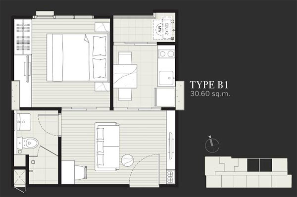 - แบบ 1 ห้องนอน พื้นที่ใช้สอยขนาด 30.60 - 37.90 ตร.ม.